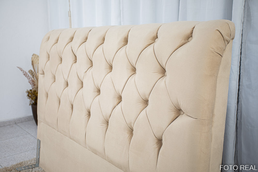 - Tecido: suede com ponto de capitonê,