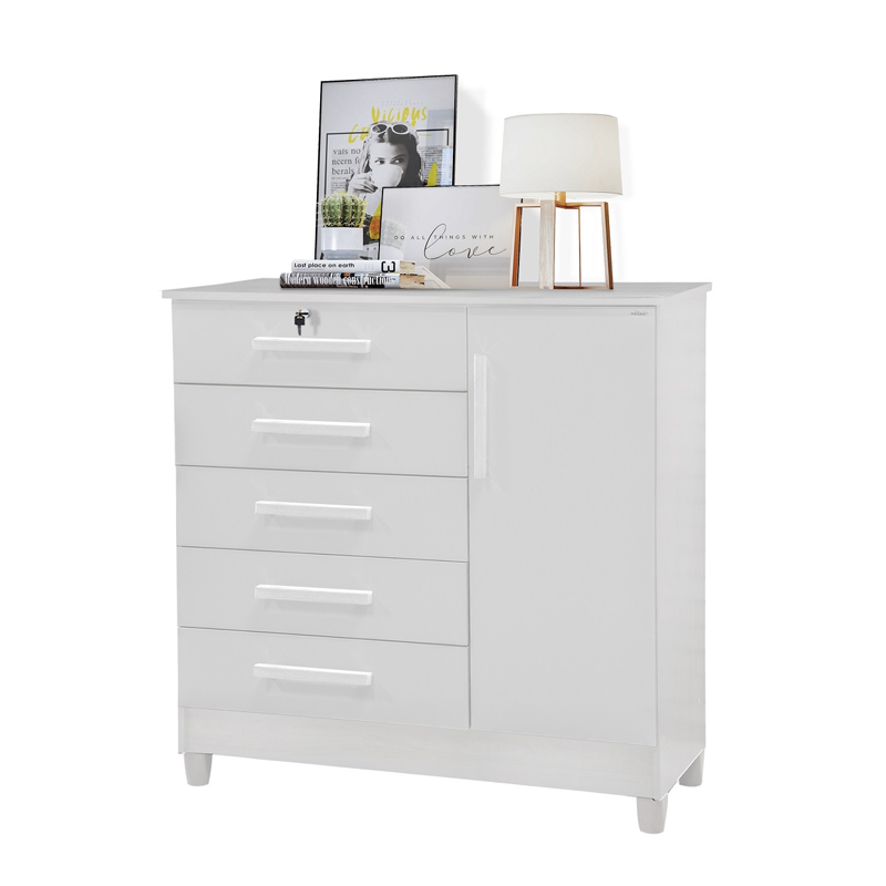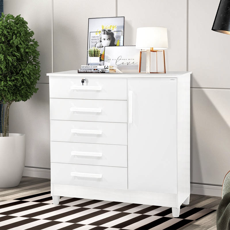 Cômoda Vitória com 5 Gavetas e 1 Porta Branco Rud Rack