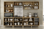 Vidro reflecta – Corrediças telescópicas – Módulos individuais – Pés com regulagem de altura – Espaço para microondas