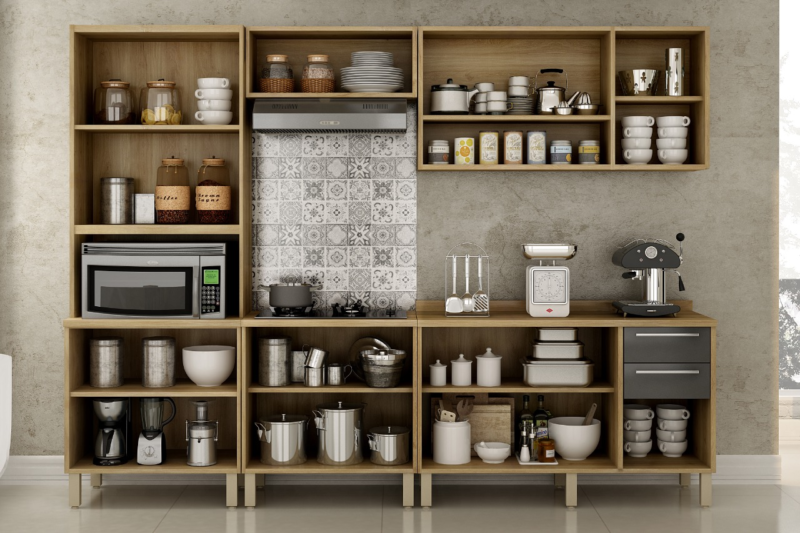 Seja o primeiro a avaliar “Cozinha Modulada Paris Com Três Portas Com Vidro 5 Peças-Sallêto Móveis – Carvalho/Off White”
