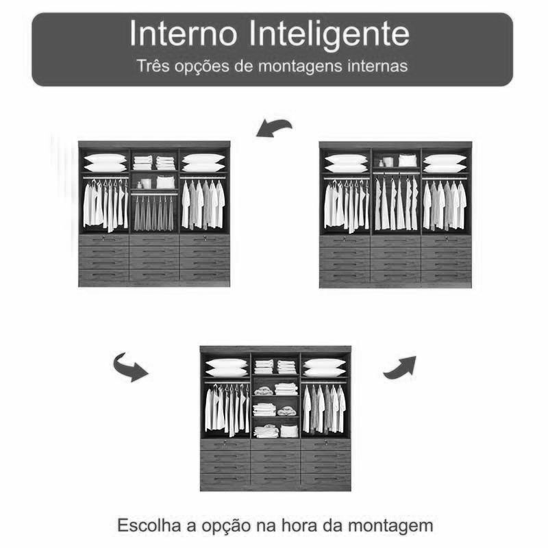 O Roupeiro Mônaco 06 Portas 12 Gavetas – Largura 2.40m é ideal para deixar seu quarto muito mais belo e organizado. Além disso, possui interior inteligente com 3 opções de montagens para maior flexibilidade e se ajustar à sua necessidade. Mais abaixo vou detalhar as principais características desse belo móvel de quarto para que faça a sua escolha com segurança.