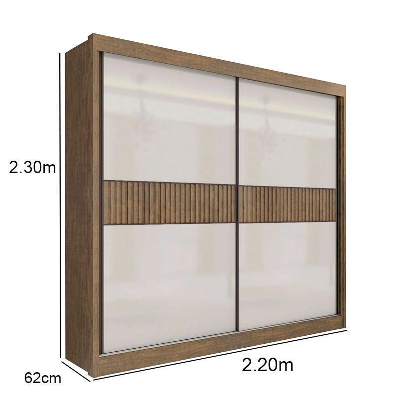 Roupeiro 2 Portas Cancun Ripado 100% MDF Ypê/Off White Larg. 2.20m DDoro