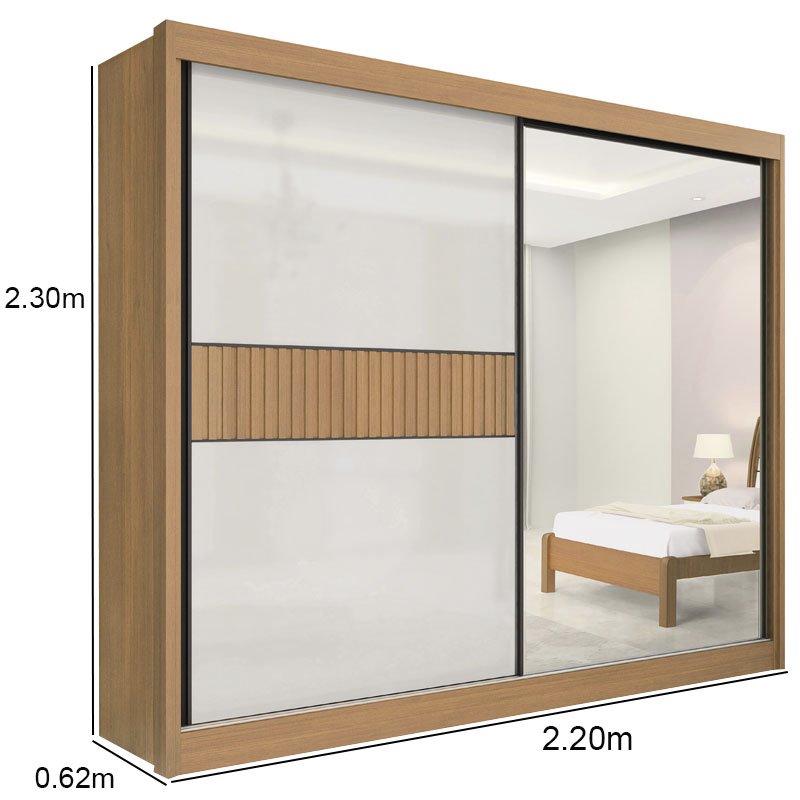 Roupeiro 2 Portas Titanium Ripado 100% MDF Cinamomo/Off White Larg. 2.20m DDoro