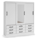 Roupeiro Meridian Plus 3 Portas 9 Gavetas Branco Larg. 2.00m D’Doro