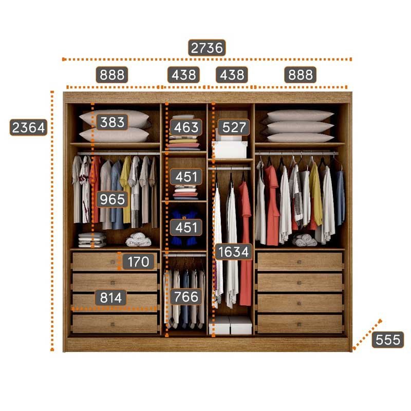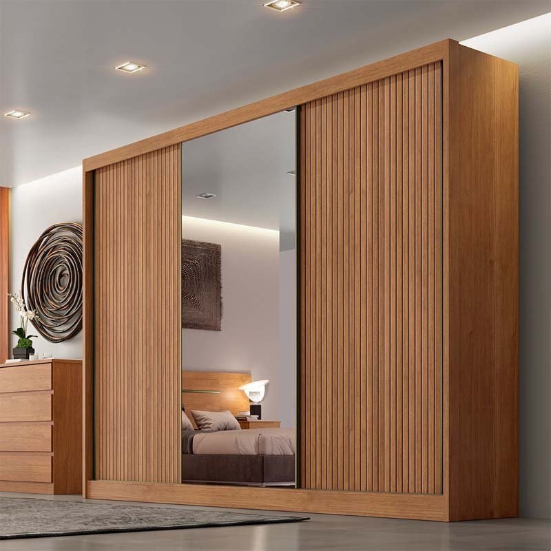 Roupeiro 3 Pts 8 Gav. Divano c/Espelho 100% MDF Cumaru 23 Larg. 2.73m Novo Horizonte