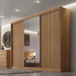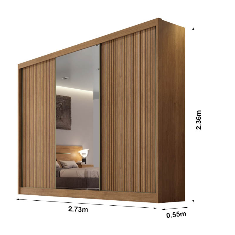 Roupeiro 3 Pts 8 Gav. Sollo Plus Ripado c/1Espelho 100% MDF Cumaru Larg. 2.73m Novo Horizonte