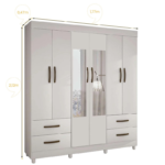 Roupeiro 6 Portas Larg. 1.77m Verona C/Espelho Branco Sallêto