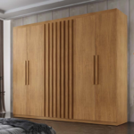 Roupeiro Cairo Ripado 6 Portas 100% MDF Larg. 1.80m Nature Rufato