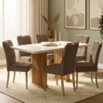 MESA MONA/MUNIQUE 160 MEL/BLONDE OFF WHITE COM 6 CADEIRAS SOPHIA VELUDO MARROM – VIERO MOVEIS + WM DECOR