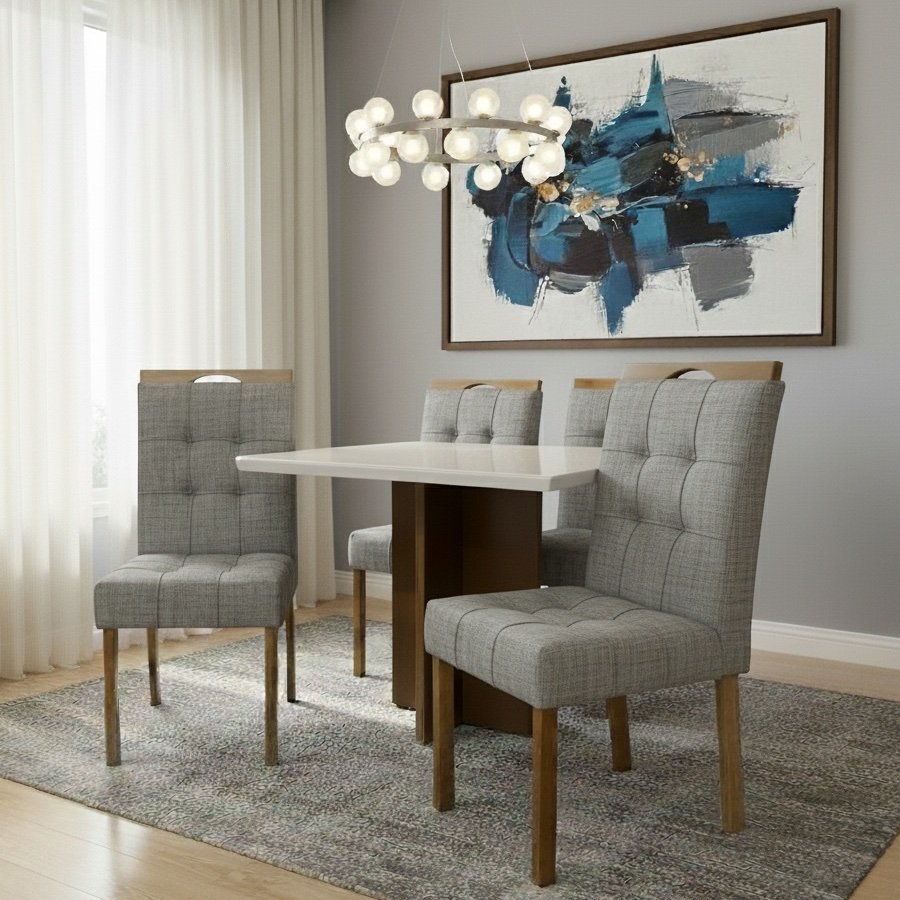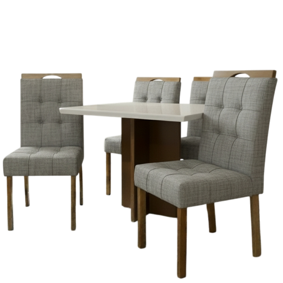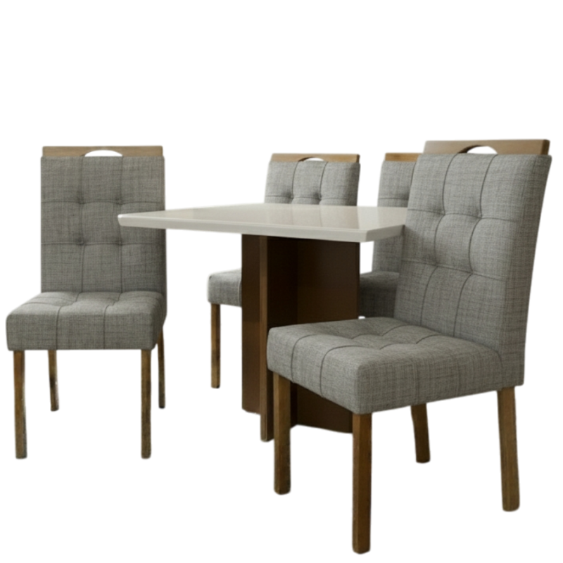 MESA SALINAS 120 CINAMOMO/OFF WHITE COM 4 CADEIRAS SOPHIA LINHO CINZA GRAFITE – CEL MOVEIS + WM DECOR