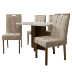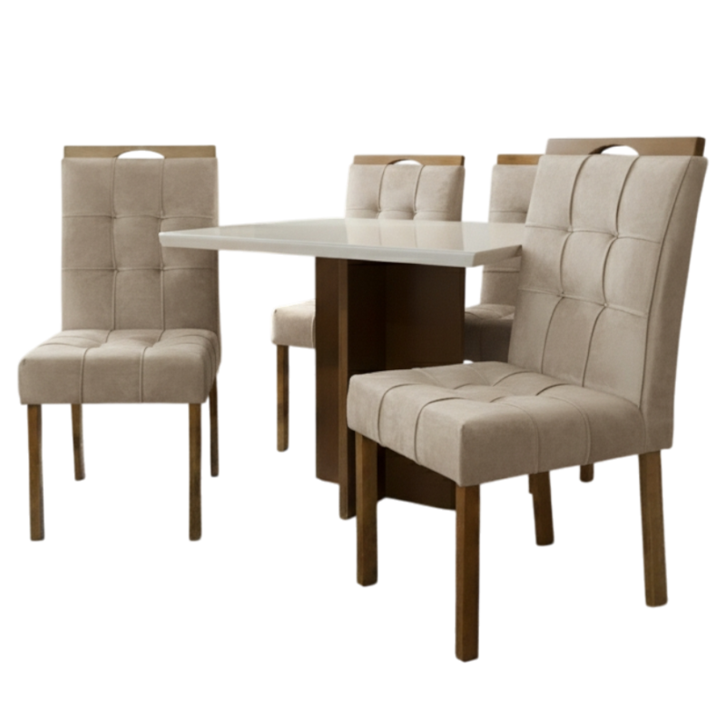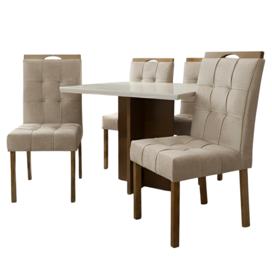 MESA SALINAS 90 CINAMOMO/OFF WHITE COM 4 CADEIRAS SOPHIA VELUDO BEGE – CEL MOVEIS + WM DECOR