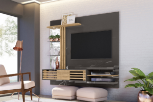 Painel + Rack até 75″ Aurora TB343F Off White/Freijó – DALLA COSTA