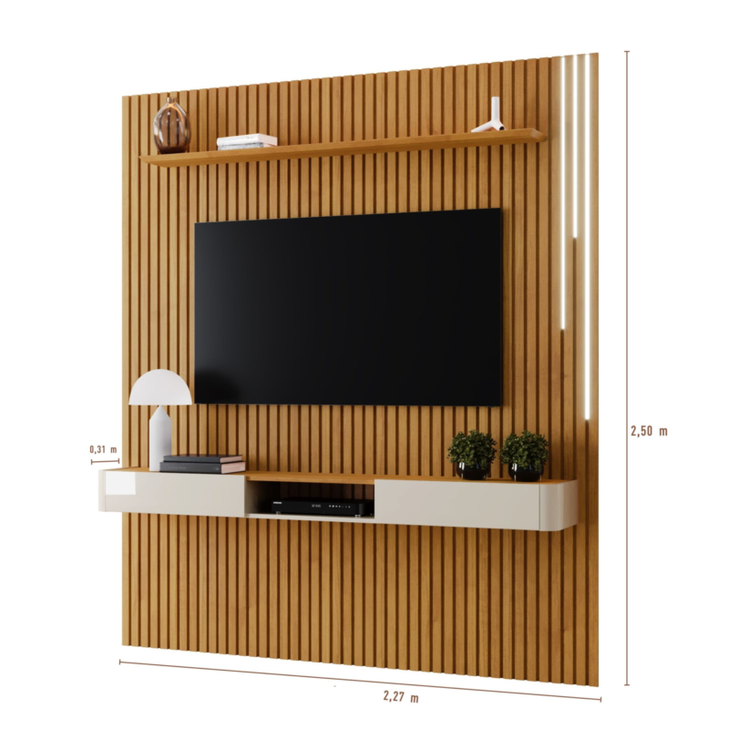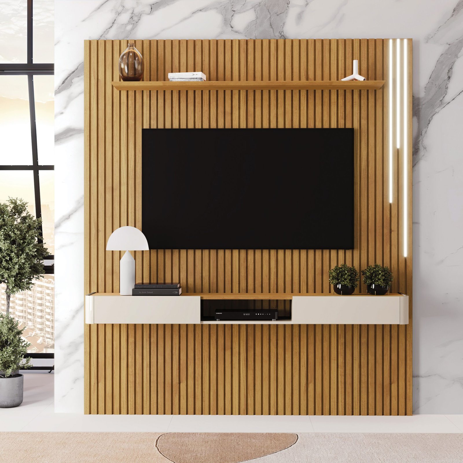 Painel até 75″ Lyon Naturale + Nicho Arcus 1,80 Off White/Naturale – MAVAULAR