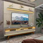 Painel até 85″ Royal 220 Off White + Rack Nobre 210 Off White/Naturale – GELIUS