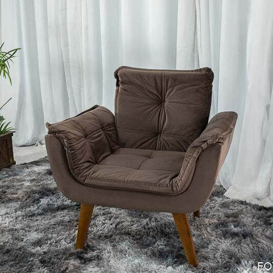 Seja o primeiro a avaliar “Poltrona Pérola Base Fixa Veludo Marrom”