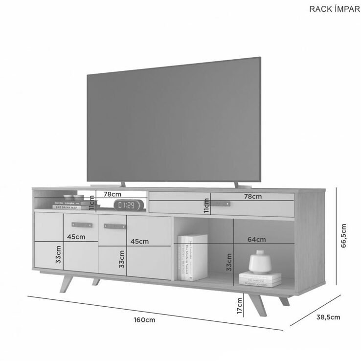 O Rack ìmpar Para TV até 65 Polegadas é ideal para quem gosta de sofisticação e beleza. Além disso, conta um design contemporâneo que vai se destacar na decoração da sua sala de estar.
