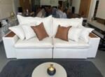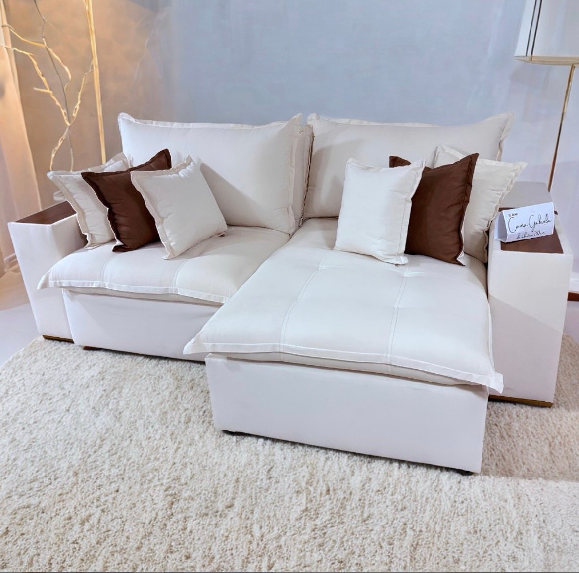 Sofá Cama Thebas/Gabriela 2,90 m Linho Cru 304/Courino Dalas – ZARAT ESTOFADOS