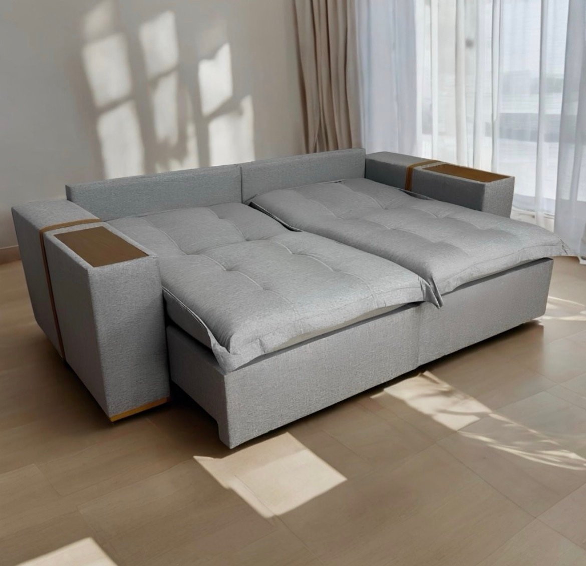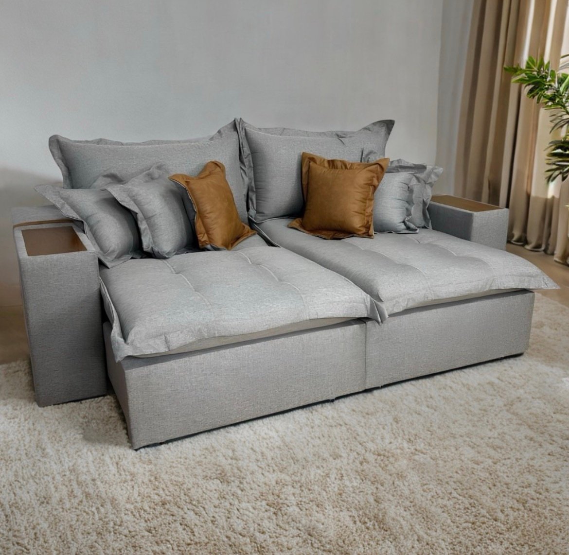 Sofá Cama Thebas/Gabriela 2,90 m Linho Grafite 301/Courino Dalas – ZARAT ESTOFADOS