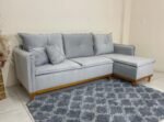 Sofá Cama Retrátil Reclinável Gabriella 2,50m – Cinza Linho / Marrom Courino