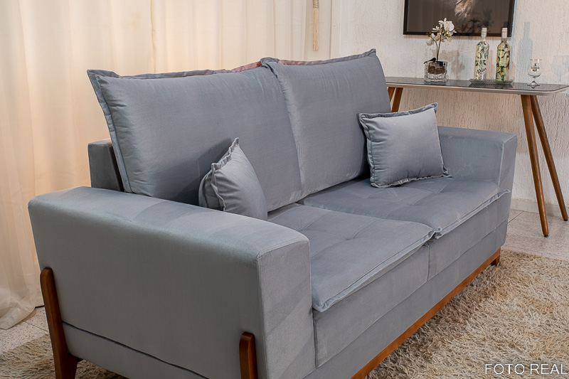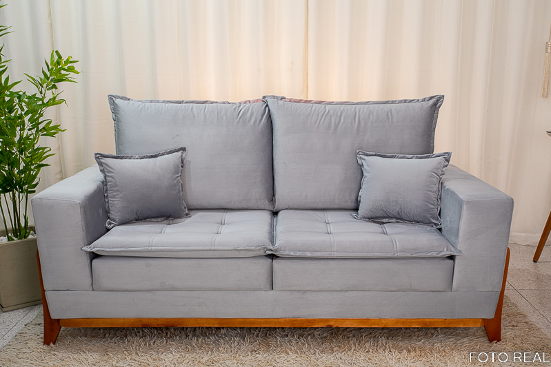 Sofá 3 lugares Havaí Luxo 2.00m Veludo Cinza 562 – Molas Ensacadas