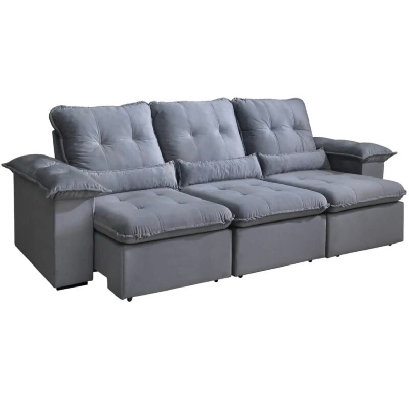 Sofá Arsenal 5 Lugares Retrátil e Reclinável 270cm 3 Módulos Tecido Veludo ( Cinza )
