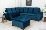 Sofá Canto 5 lugares com Puff Alemanha Veludo Azul A16