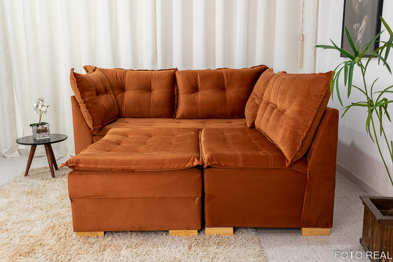 Sofá de Canto Vênus Veludo 3 em 1 Terracota 549
