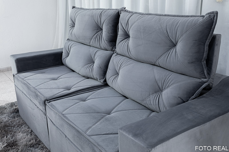 O assento é feito com percintas Italiana, molas bonnel e espuma D28 espessura. Além disso, as corrediças para movimentação do assento no abrir e fechar são em tubo de ferro.