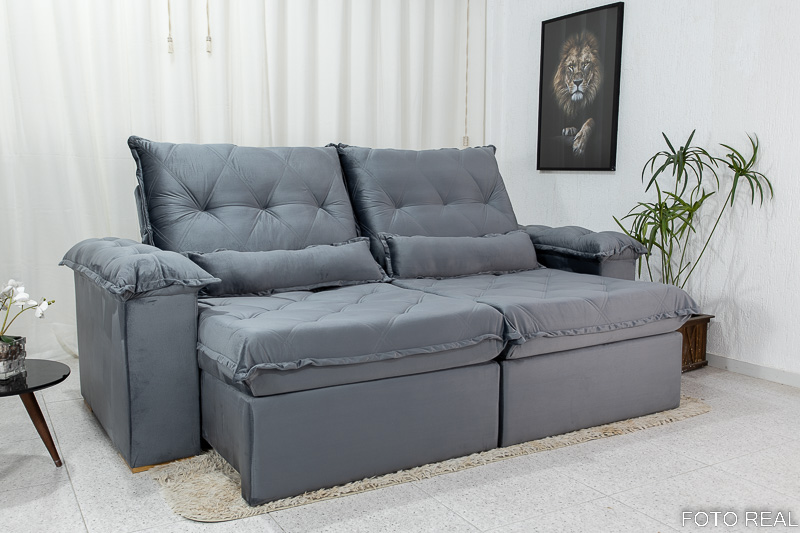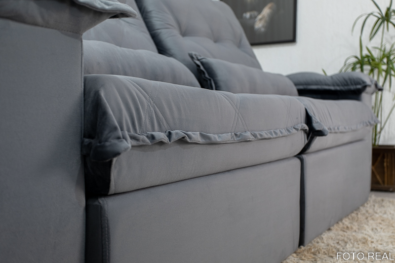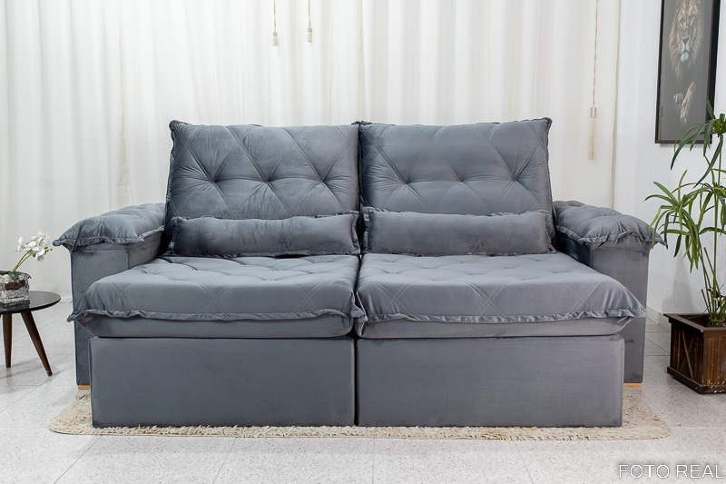 O assento é feito com Pillow top de 22 cm, espuma D28 com manta de fibra siliconada, molas ensacadas, percinta elástica e molas bonnel. Além disso, as corrediças para movimentação do assento no abrir e fechar são em tubo de ferro, com isso a qualidade e acima de tudo, a durabilidade do estofado retrátil aumentam significativamente.