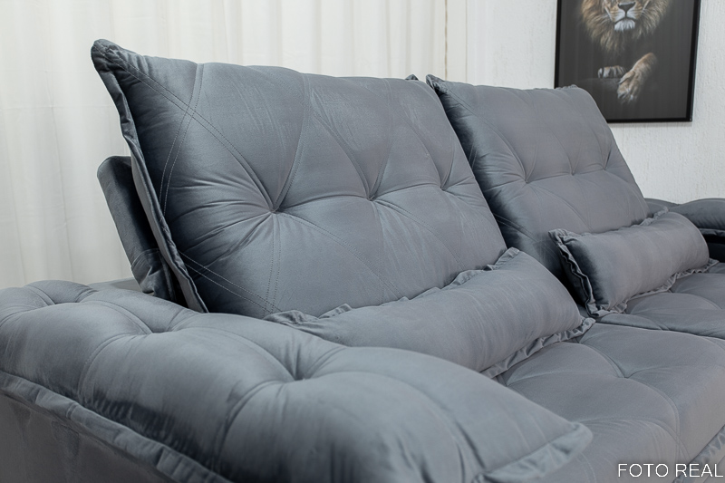 O encosto são com almofadas compostas de fibra siliconada o que proporciona mais conforto. Além disso, possui várias posições de inclinação.