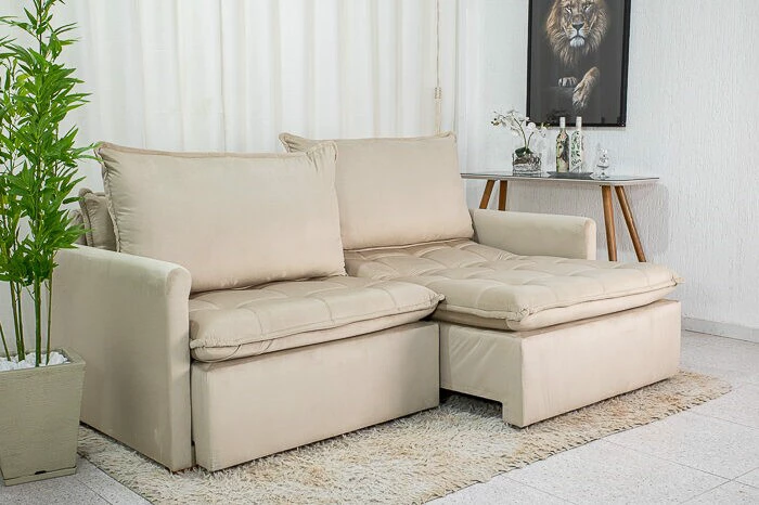 Sofá Retrátil Reclinável e Sofá Cama Málaga 2.15m Veludo Bege A32
