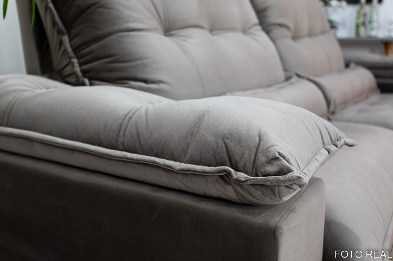 O revestimento é em tecido veludo. O sofá retrátil em veludo tem uma superfície extremamente macia devido a pequenos fios armados e delicados.