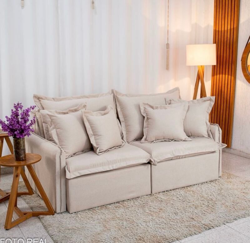 – Tecido linho: O linho possui uma textura naturalmente sofisticada, que confere ao sofá um aspecto elegante e atemporal. Seu visual suave e agradável pode dar um toque de classe à decoração de qualquer ambiente.